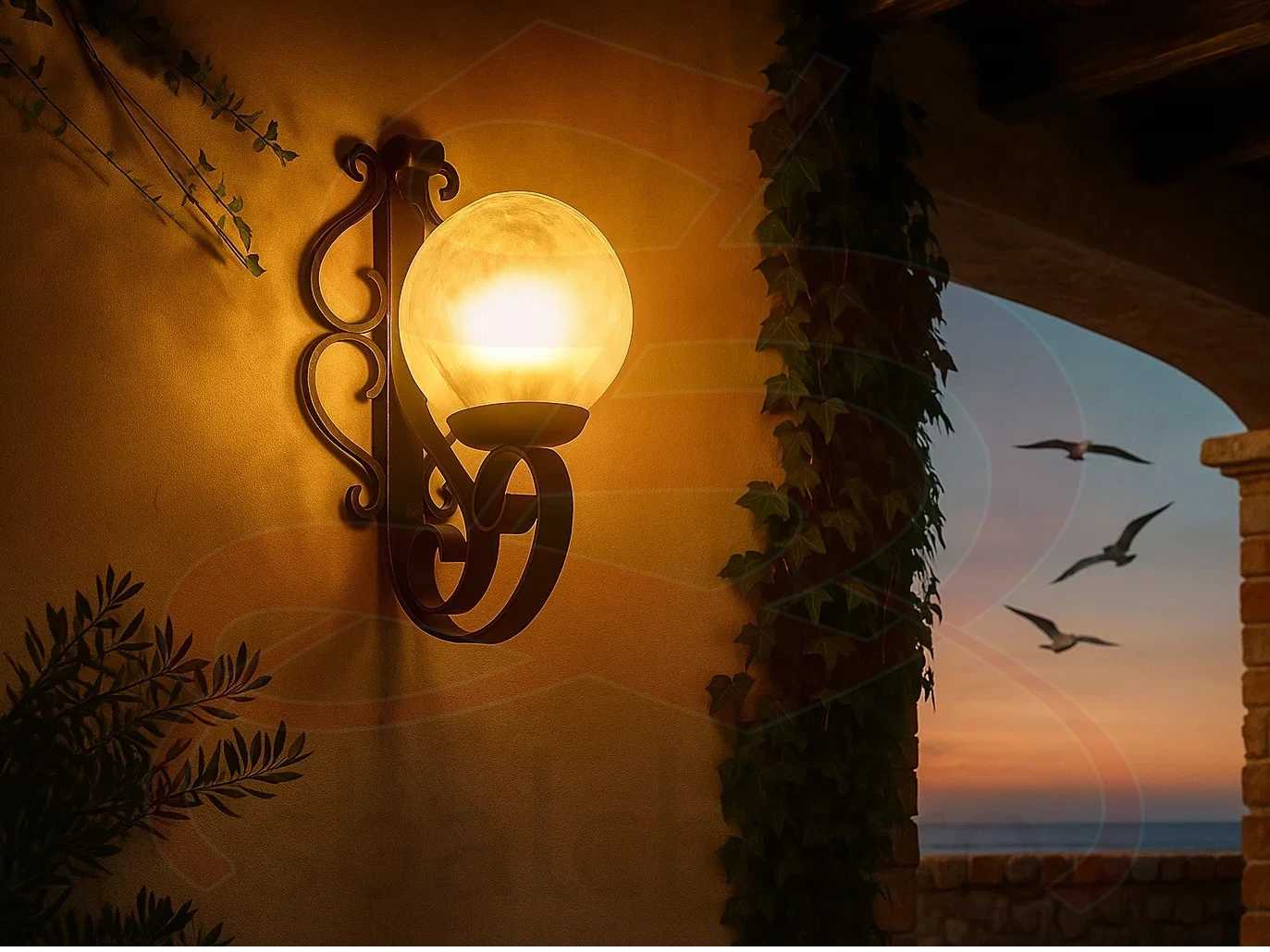 The wrought iron wall-mounted sconce is a decorative element that stands out for its wrought iron structure, perfect for those seeking a handcrafted and high-quality accessory. With a classic and versatile design, this lantern is entirely made of wrought iron, with manual craftsmanship that enhances its rustic and vintage style. The elegant and decorative iron arm allows secure wall mounting, adding a touch of sophistication to the environment. The structure is enriched with decorative motifs, such as curls, which evoke a traditional aesthetic, giving it timeless charm. External and internal use: perfect for illuminating gardens, terraces, or entrances, the sconce creates a welcoming and romantic atmosphere. It is also ideal for indoor spaces such as living rooms, hallways, or areas furnished in rustic, industrial, or shabby chic styles.